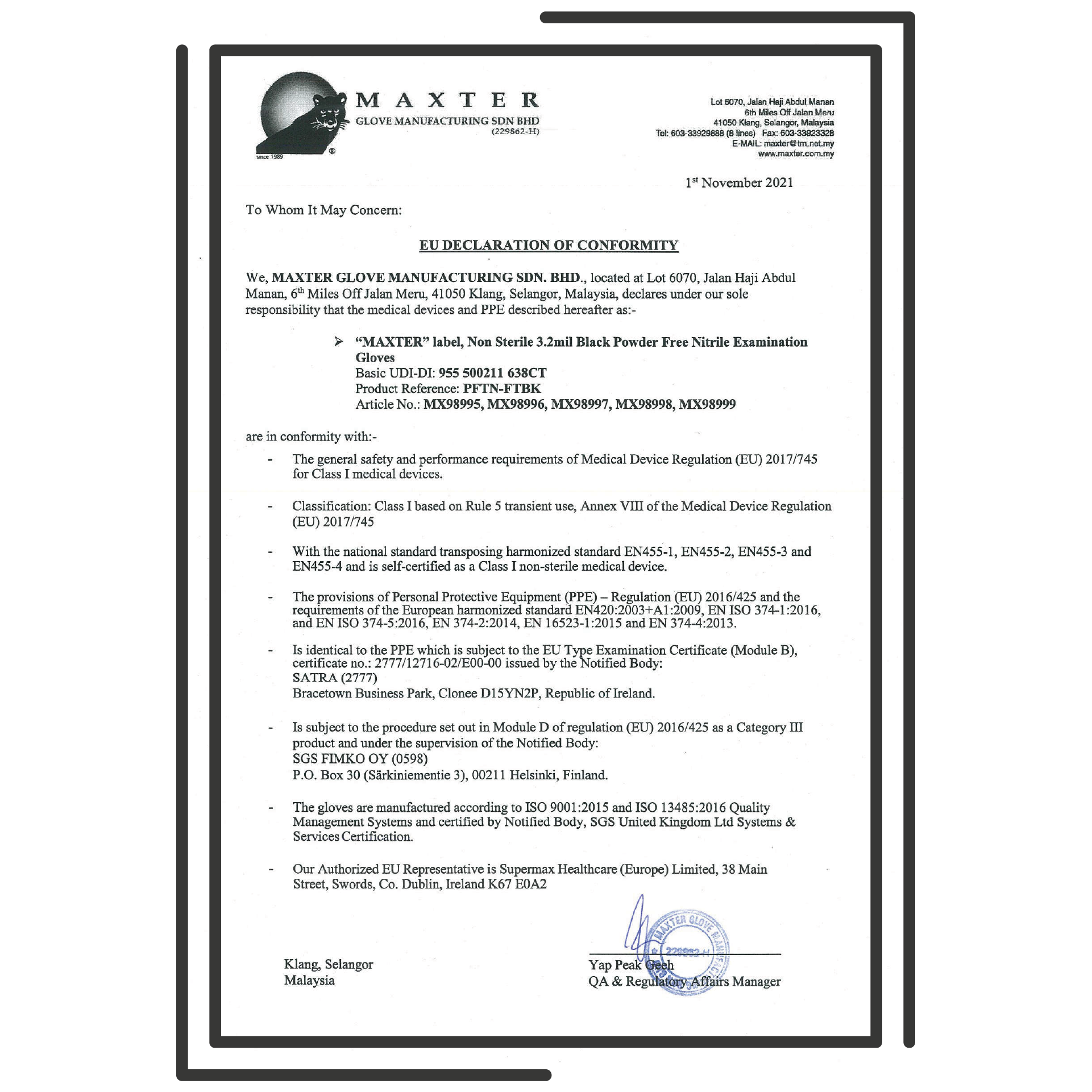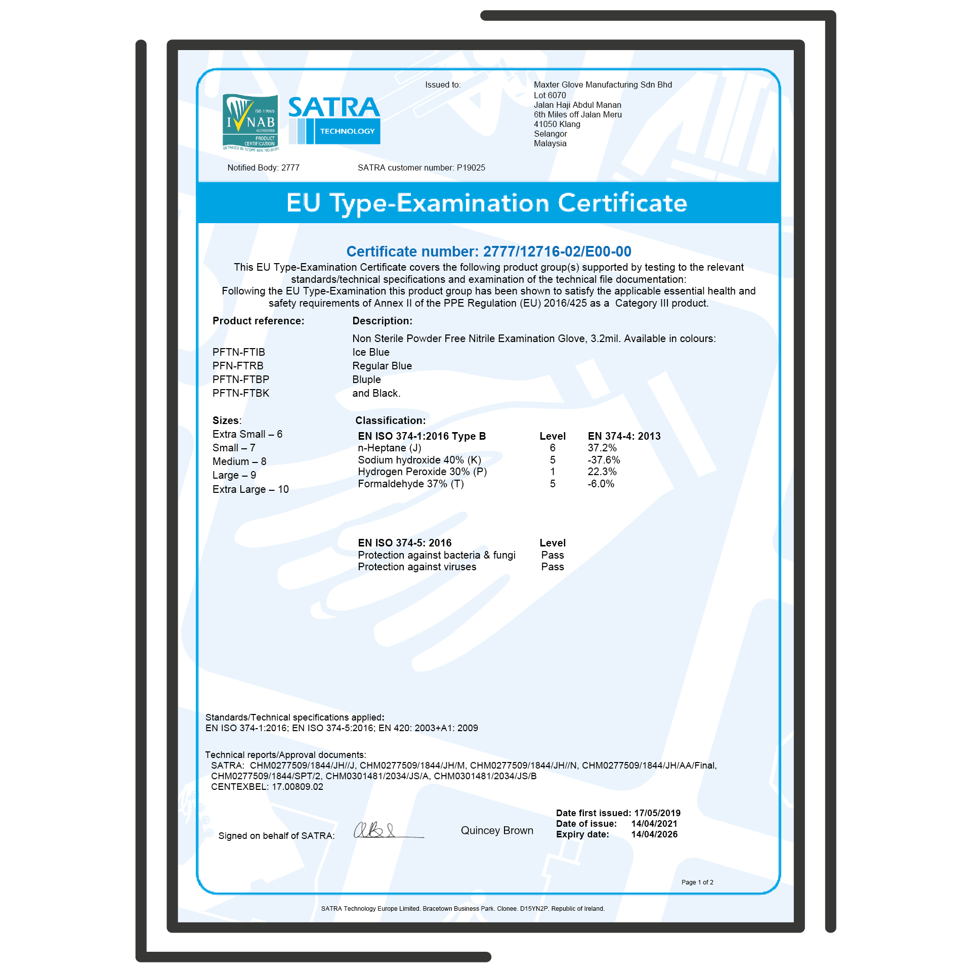PPE: 2016/425