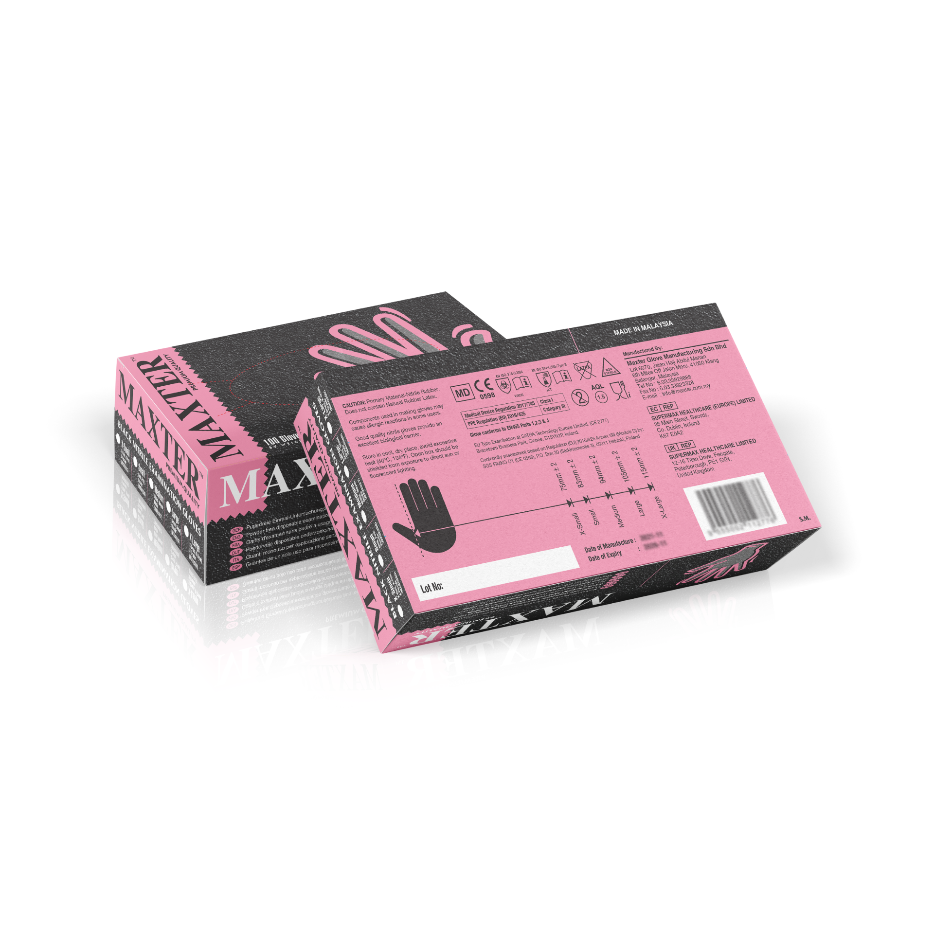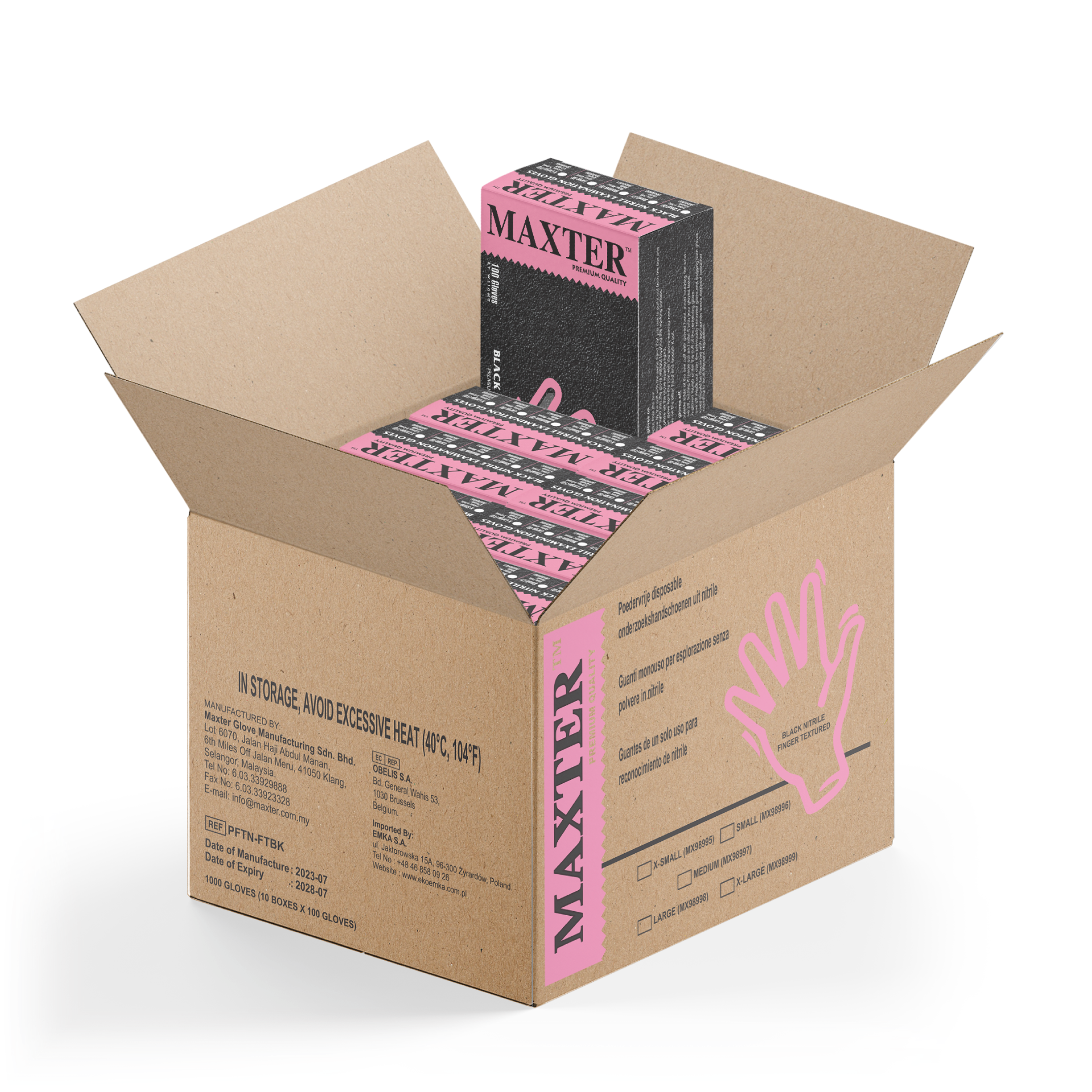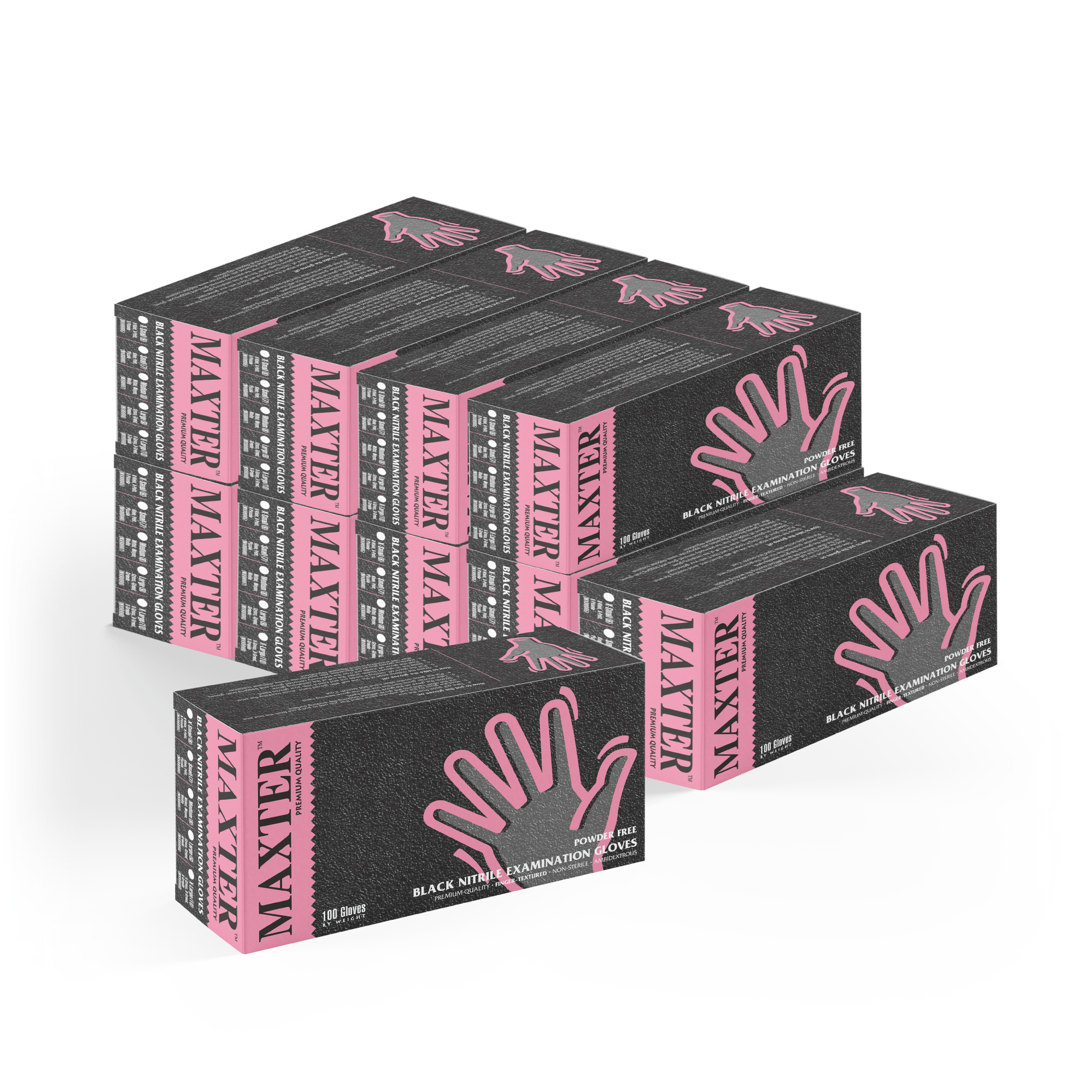 Rękawiczki Nitrylowe Bezpudrowe czarne Maxter XS – Karton 10 opakowań